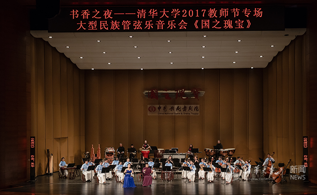 清华新闻网9月11日电 为庆祝第33个教师节的到来,9月8日晚,“书香之夜”教师节专场演出——中国歌剧舞剧院大型民族管弦乐音乐会《国之瑰宝》在新清华学堂奏响。