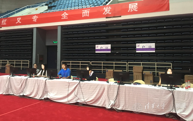 综合体育馆内工作人员准备就绪。