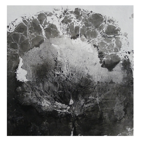 《璞》 30cm×30cm 宣纸、墨汁、发泡剂 2012年  祝 翠