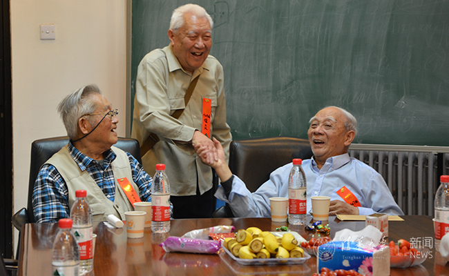 袁学诚和夏国治老学长,都是1949年来到物理系的。毕业后,他们都被分配到了国土资源部国家地质调查局工作,成为了一生的挚友。如今两人已分别多年,分别是89岁、88岁高寿,但一见面,依旧不忘谈论物理学问题。座谈会开始前,两人就一直在交流对国家科学发展的观点和看法。科学,已是他们毕生的挚爱。