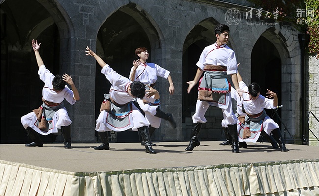 当地时间15日下午,清华代表团访问了爱尔兰国立大学(高威),并在校园内的露天草坪举办了“清华日”演出活动。学生艺术团舞蹈队、民乐队、曲艺队、京剧队的20名同学为观众带来了汇集中西文化特色的精彩节目。中国驻爱尔兰大使岳晓勇、众多高威大学师生以及侨胞观看演出,并与同学们互动交流。
