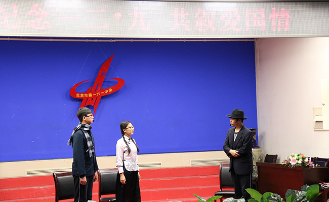 图为北京一六一中学学生在表演“一二九”主题话剧。