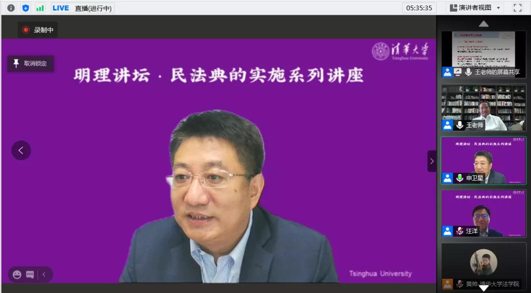 王利明的讲座围绕民法典人格权编的创新、亮点和适用等方面展开。