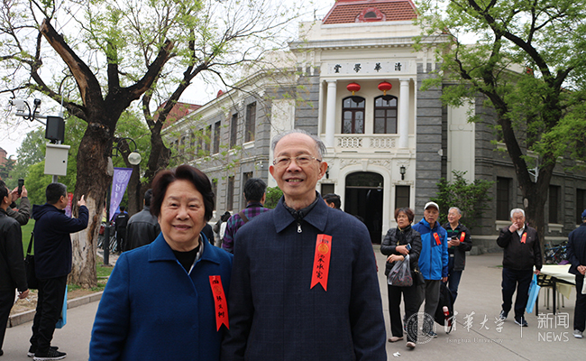 两位老人是59届汽车系老校友,793班梁承宪老先生和他的妻子林又树。他们说,今天回到母校,看到很多老建筑让人情不自禁地回想起当年上学时的情形。那时,他们经常在一教、二教上基础课,在科学馆上物理课。这次回来,他们欣慰地感到清华的精神没有丢,如今清华更加开放活泼的气度也让他们深感振奋。
