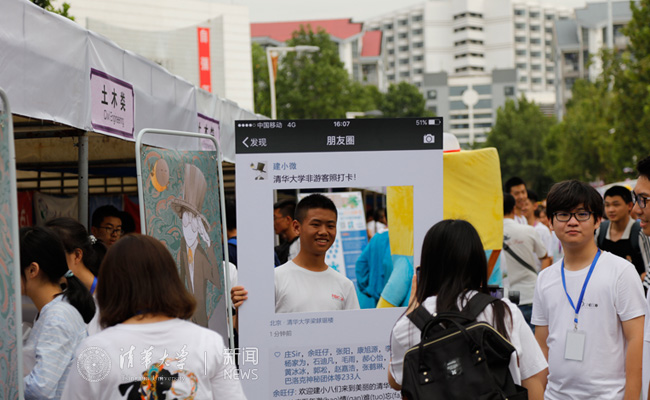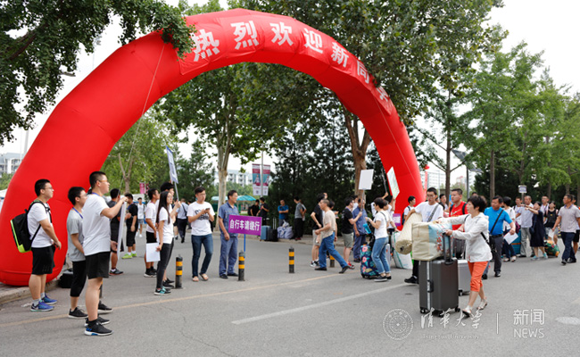 热情洋溢的笑脸、憨态可掬的吉祥物、迎风飘扬的条幅、清晰醒目的指示牌……都不约而同地在向2018级新生发出最温暖的问候:“美丽的清华园欢迎你的到来!”