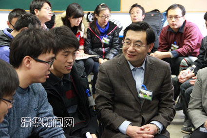 图为校党委书记胡和平与同学们亲切交谈。化工系 供图