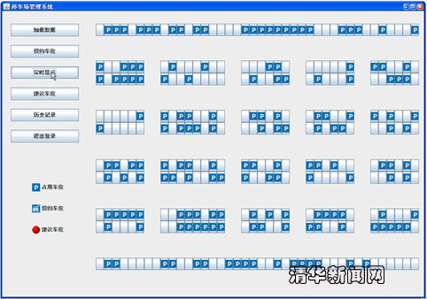 图为实时显示停车场停车情况、建议最佳停车位置的管理软件界面。