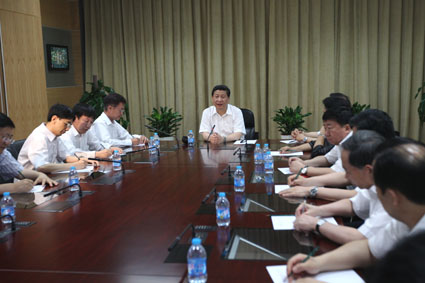 范维澄院士向习近平汇报了研究所致力于公共安全的教育和学术发展,为国家公共安全保障提供科技与人才支撑的情况。