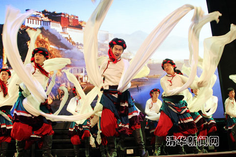 图为校庆歌舞晚会上新疆大学学生带来的民族舞蹈表演。研通社记者 王政显 摄