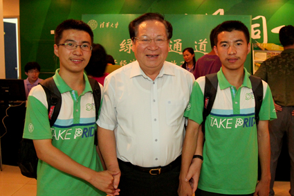 在国防定向生的迎新站点,顾秉林校长与来自兰州的自动化系国防定向生朱懿和他的父母攀谈起来。当看到朱懿的体形稍显瘦小,顾校长拍着朱懿的肩膀亲切的叮嘱:“要多锻炼!在清华,学习要搞得好好的,身体也要练得棒棒的!”