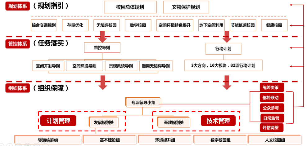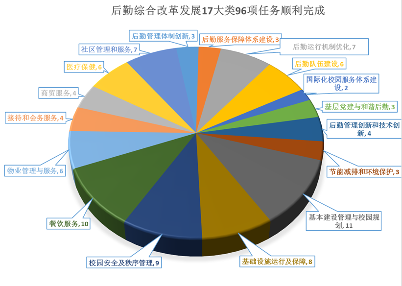 明晰后勤综合改革与发展路径,加强顶层设计和规划引领,统筹考虑学校事业发展战略目标和后勤现阶段承载能力,坚持事业规划与队伍规划同步制定、校园规划与学科规划有效衔接、综合改革与事业发展规划协同实施。按照工作范围和时间两个维度分解制定工作任务,科学描绘改革与发展蓝图。实施过程中狠抓任务落实,年度层层推进,确保推动改革力度始终不减。结合后勤优良传统和相关行业规律,坚持体系化整体推进基本建设、项目管理、服务保障等工作,与学校同步发展、融合发展。
