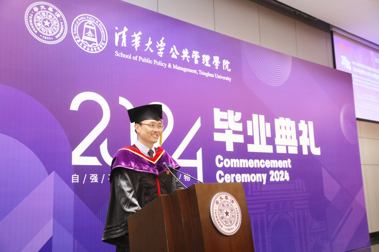 朱旭峰在致辞中表示,公管学子在数字智能时代要秉持“迭代思维”,在变革中求发展,在迭代中谋突破。迭代思维鼓励敏捷决策。在不断变化的公共治理领域,同学们需要具备迅速响应、灵活调整的能力。迭代思维鼓励持续创新。同学们需要在实践中不断尝试、不断优化,通过累进式的行动,逐步逼近问题的核心。迭代思维鼓励前瞻布局。同学们不仅要追求事务处理的效率,还应洞察社会发展脉络和国家发展战略,以实现国家长期的发展愿景。祝愿同学们能够成为推动社会进步和国家富强的创新者和引领者,不断追求卓越,为建设更加繁荣美好的世界贡献自己的力量。