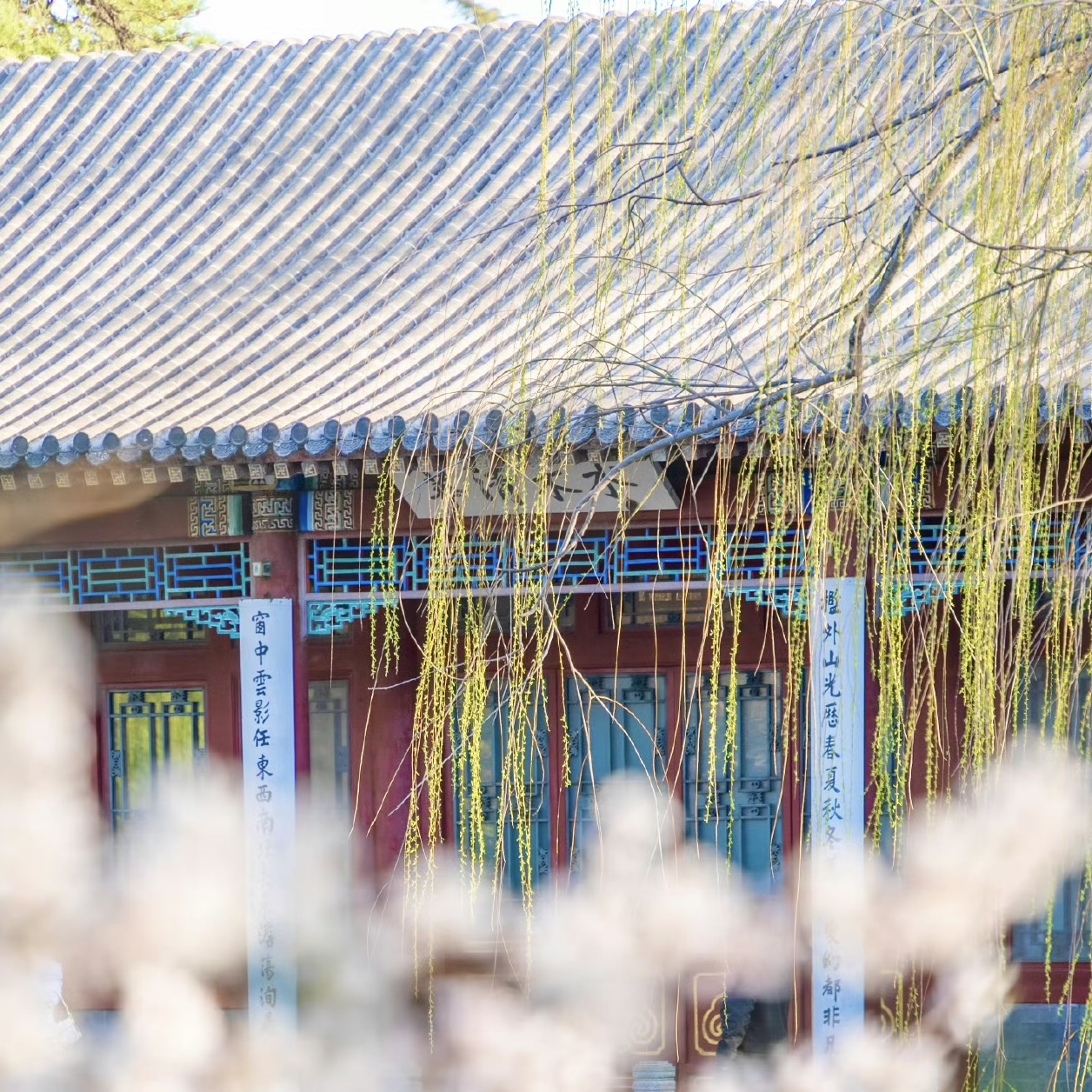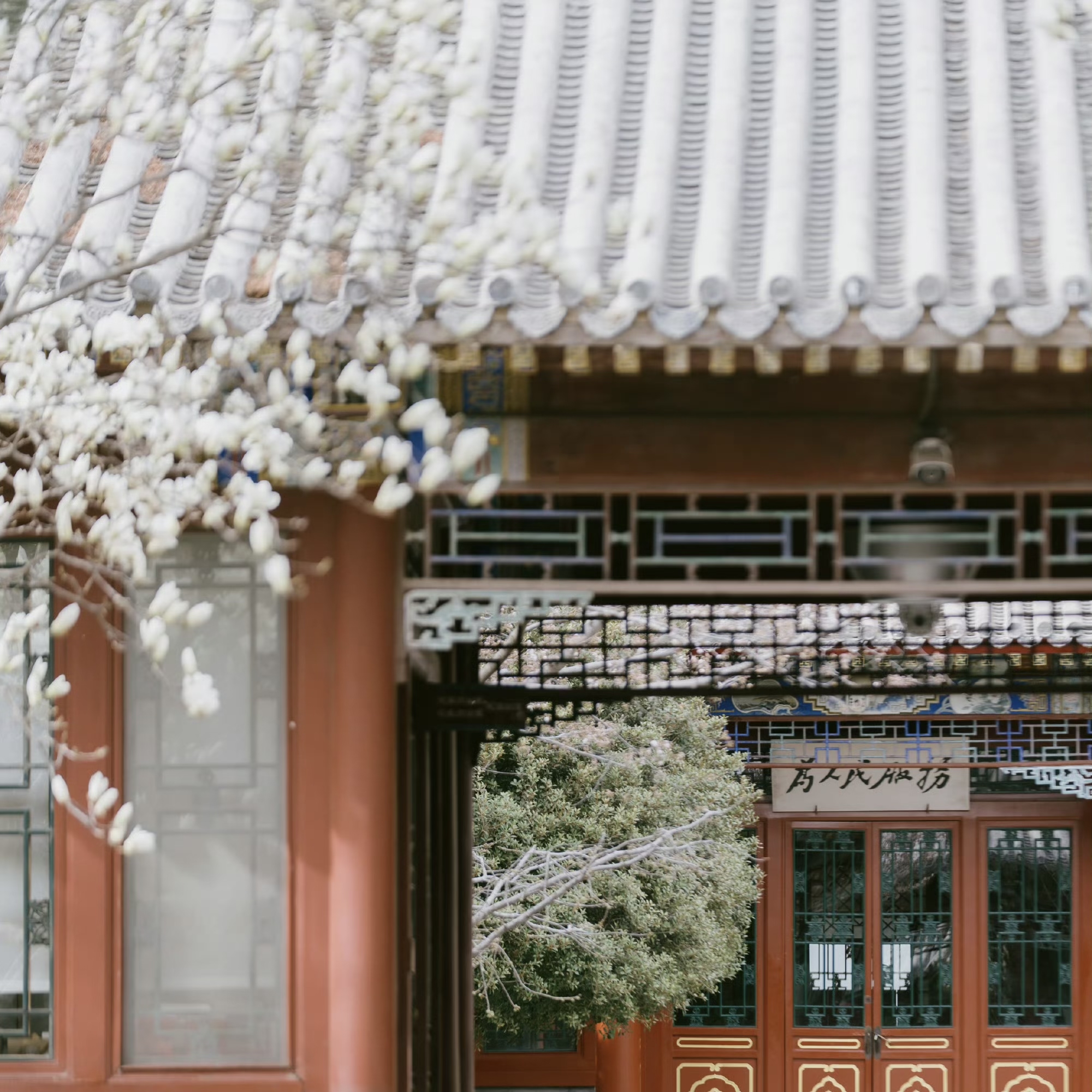 春风和煦,玉兰花在檐角下,静静绽放。花瓣轻颤,似是倾听着鸟的低语。红墙绿瓦间,是时光的痕迹。